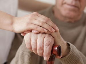 Cuando los adultos mayores tienen dentadura postiza puede llegar a ser difícil o imposible de llevar cuando empeora su enfermedad, representando un peligro cuando son pequeñas o parciales ya pueden tragarse debido a los movimientos involuntarios, así como también cuando son muy grandes pueden caerse más a menudo, romperse y luego no volver a encajar correctamente más.